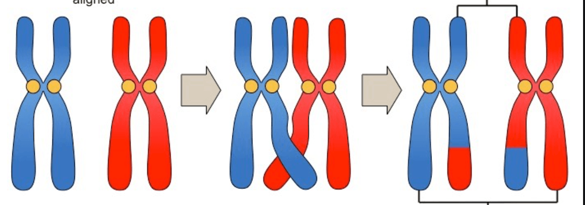 Occurs in meiosis, genetic material is swapped between paired chromosomes.