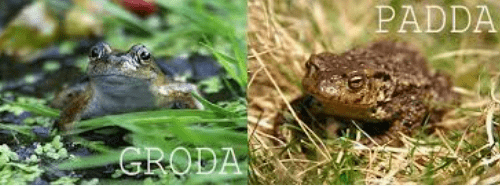 Vilka olikheter har en groda och en padda, ge minst ett exempel?