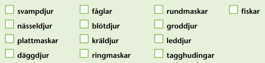 Vilka djurgrupper tillhör ryggradsdjur? (5st)