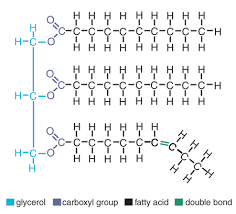 Unsaturated fats - long chains with at least 1 double bond - making it bent