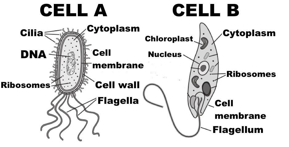 (D) Neither Cell A and Cell B are eukaryotic because they have flagella.