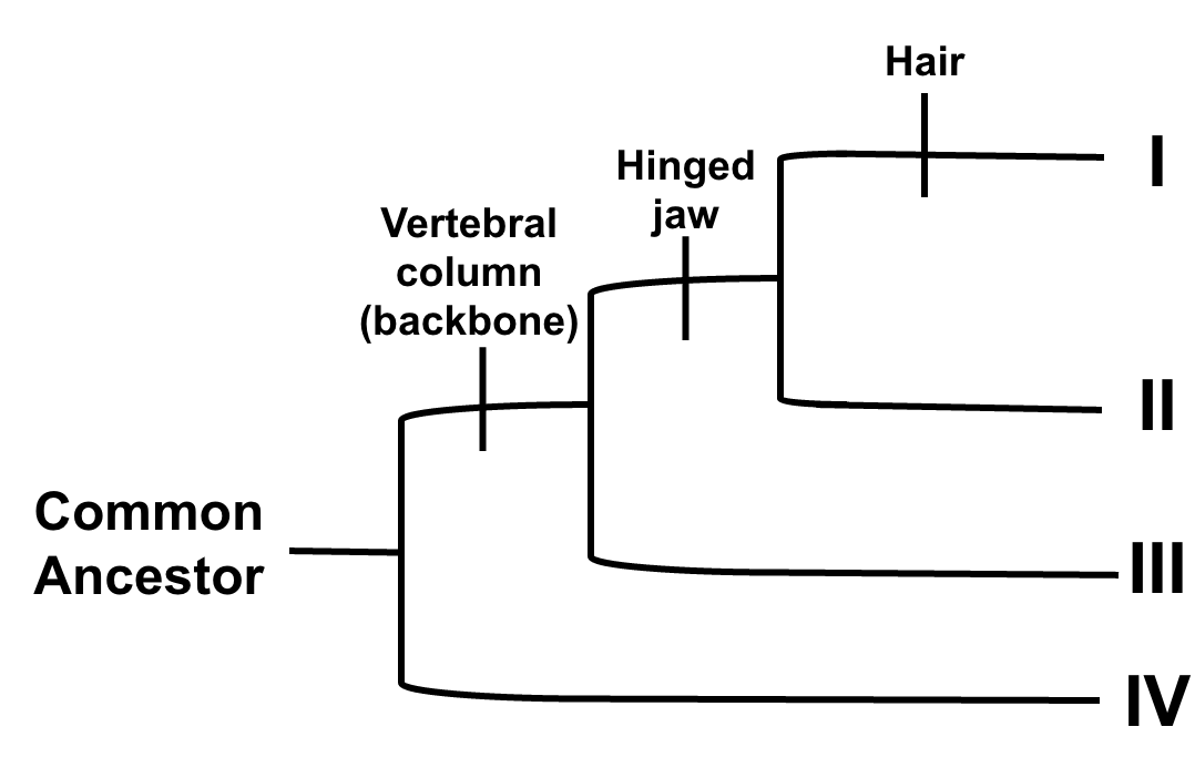 Answer: B. Species I and II have the most recent convergence and share the most recent common ancestor.