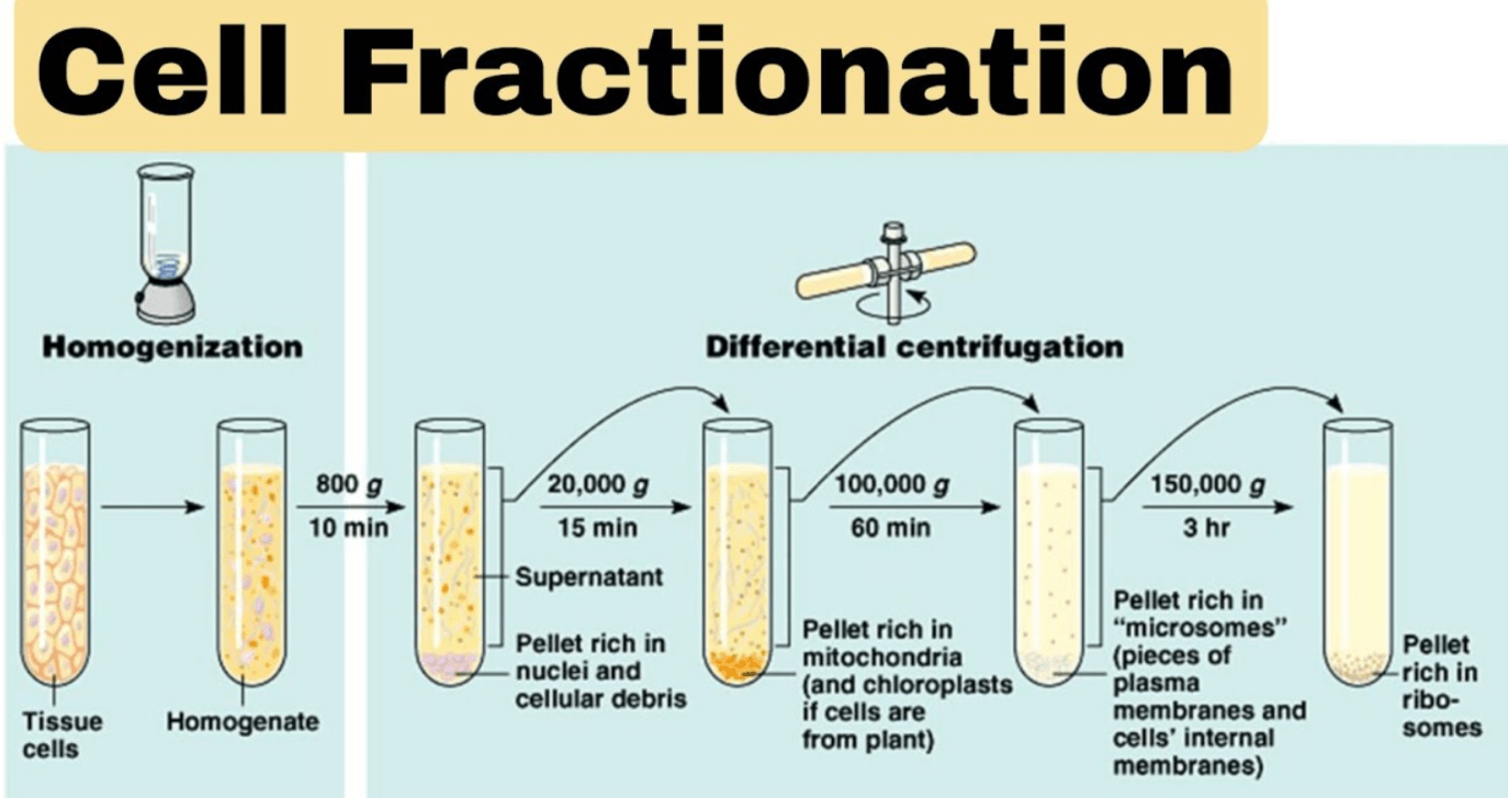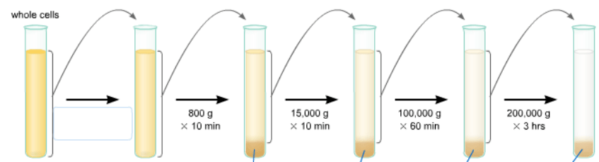Meley homogenizes and centrifuges a sample of animal tissue, resulting in a pellet. She then pours off the supernatant (liquid above the pellet) into another tube and repeats the process several times, each time at a higher speed and for a longer time. Which cell component would she most likely find after the last centrifuge?