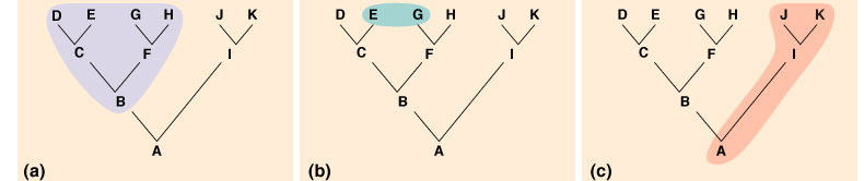 Identify each group as either, MONOPHYLETIC PARAPHYLETIC POLYPHYLETIC