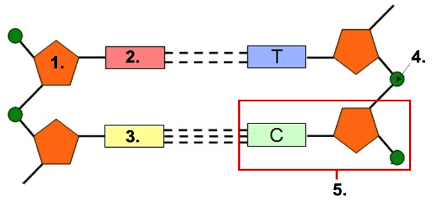 Nucleotide- made up of nitrogen base (C), sugar (deoxyribose), and phosphate