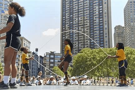 What style of jump rope was made popular on the streets of American cities and employs two ropes, rapidly turning at once?