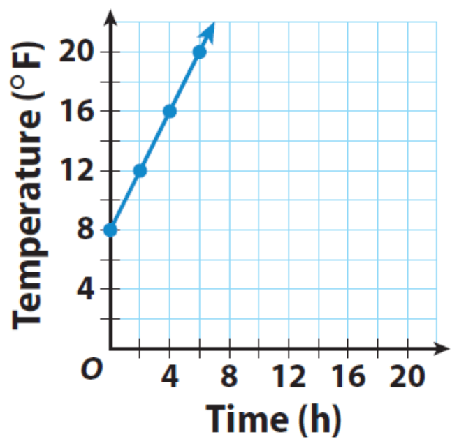 Write an equation that represents the time, h, of the temperature rising, and the temperature, y.