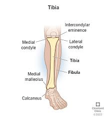 Identify the location of the smaller fibula in relation to the larger tibia.