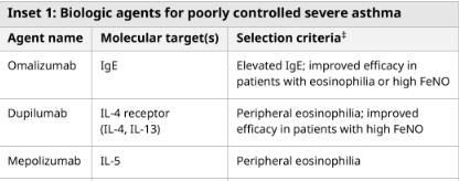 For patients with severe asthma, omalizumab can be used if ____ is/are high; Mepolizumab can used if ___ is/are high