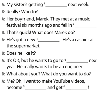 Uzupełnij zdania w Future Simple. Dodatkowo musisz samodzielnie wymyslić brakujący czasownik.