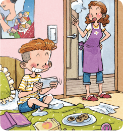 The boy is ignoring his mother. This is bad behavior because...(Answers may vary.)