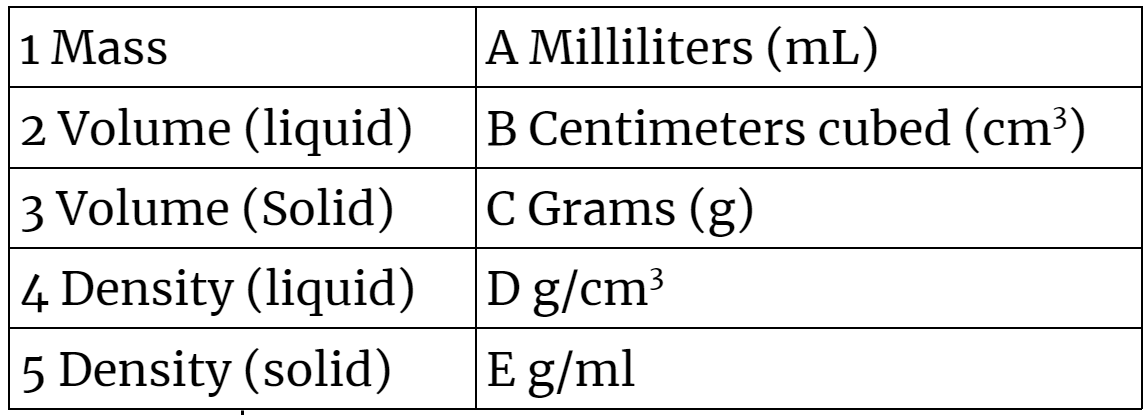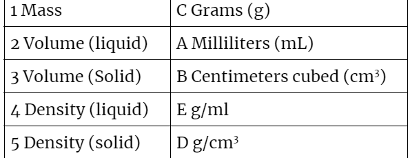 Calculate density: Volume is 100 ml and mass is 25g. Must include correct units