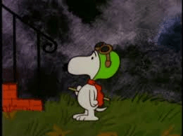 In "It's the Great Pumpkin, Charlie Brown," this is the color of Snoopy's hat as he goes to fight the Red Barron.