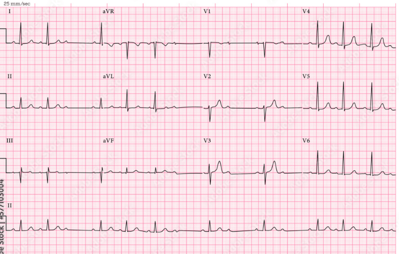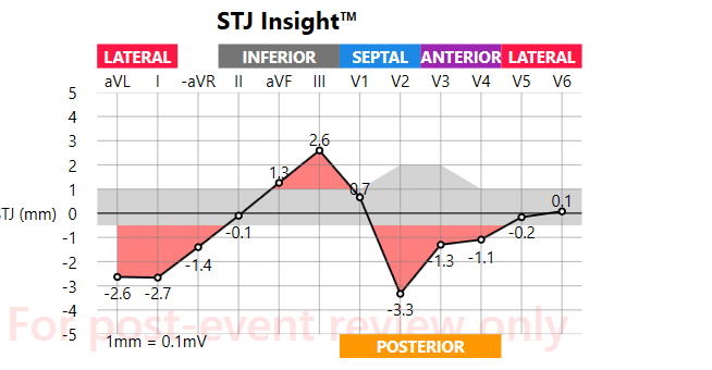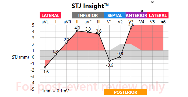 ≥1 mm ST elevation in two contiguous leads (or the 12-lead device flags 'STEMI') and the patient is symptomatic