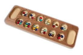 Which abstract strategy game involves moving beads along rows to capture an opponent’s pieces?