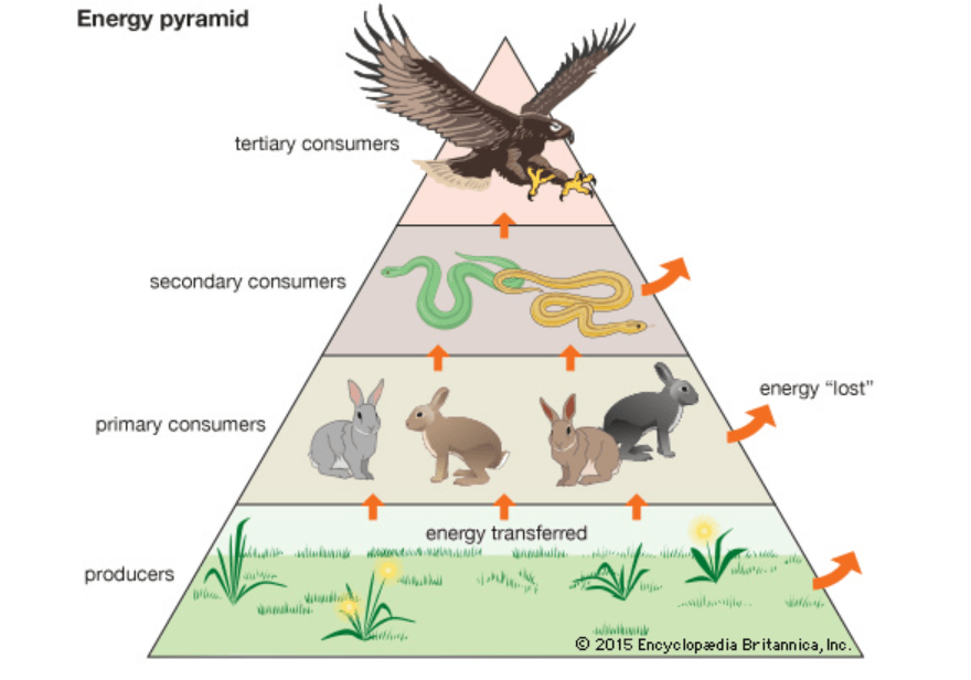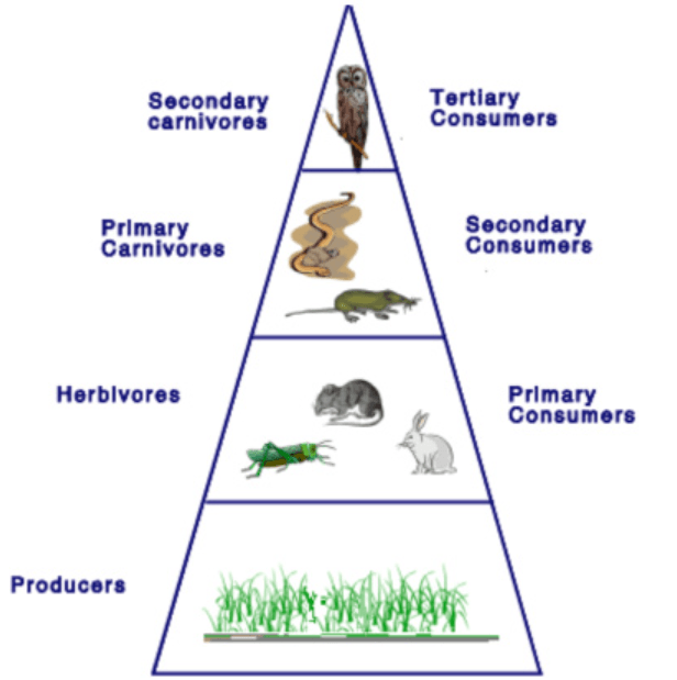 Producers, Primary Consumers, Secondary consumers, Tertiary consumers.