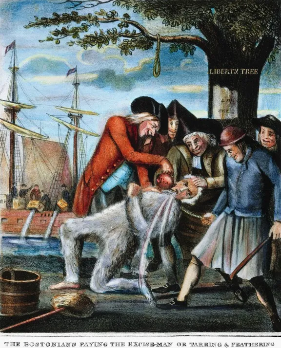 This political cartoon shows the reactions of colonists to what English action?