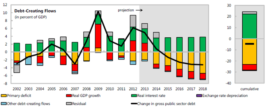 d. Le coefficient de la dynamique automatique de la dette resterait inférieur à l’unité et le déficit primaire persisterait.