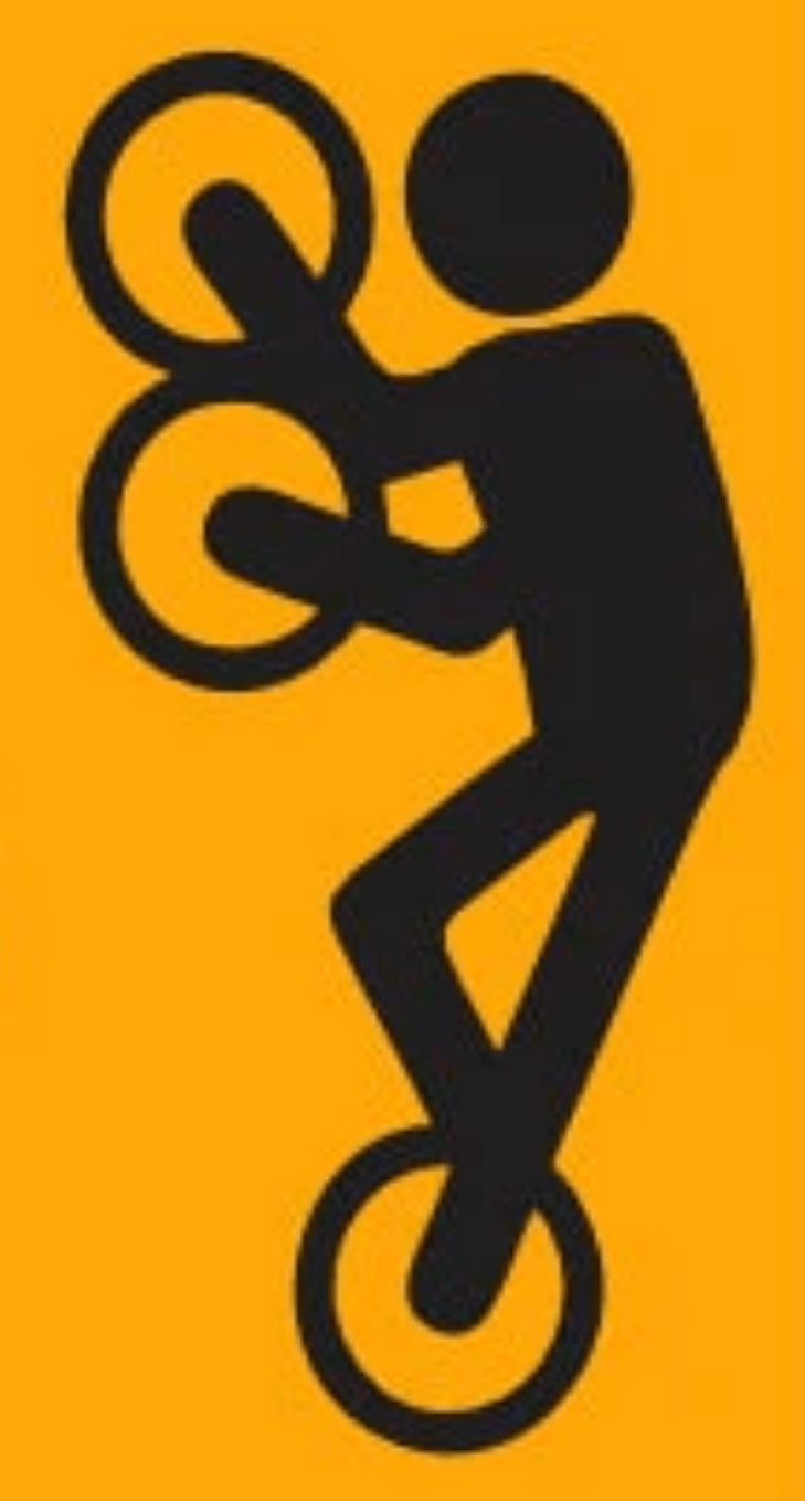 Either it's a unicycle-riding cymbal player, or it’s a caution to do this while entering a vehicle