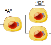 A is the parent cell and B are the daughter cells