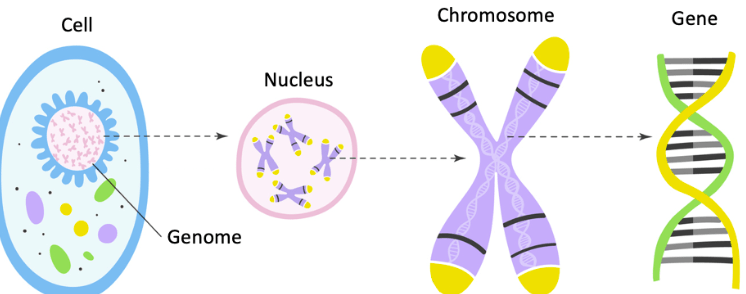 Each chromosome contains various genes with specific functions that result in our traits. Traits are specific characteristics of an organism, such as: Eye color, Hair texture& color, Height