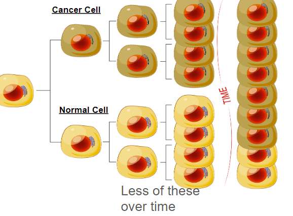Cancer Cells divide more rapidly (faster) then normal cells.
