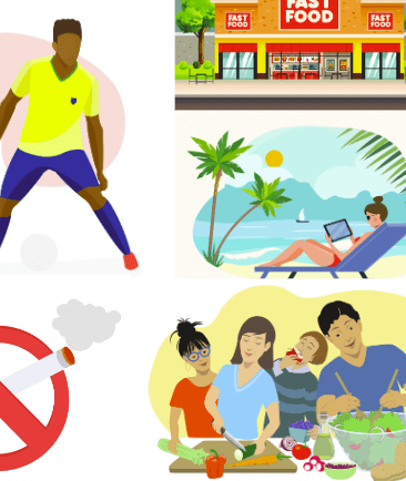 Lack of Exercise, Smoking, drinking alcohol, Fast Food, too much sun exposure.