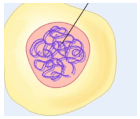 This is an image of a cell, and its nucleus. Inside the nucleus is DNA. In this cell, the DNA is in the form of __________________ because it is thin and uncondensed.