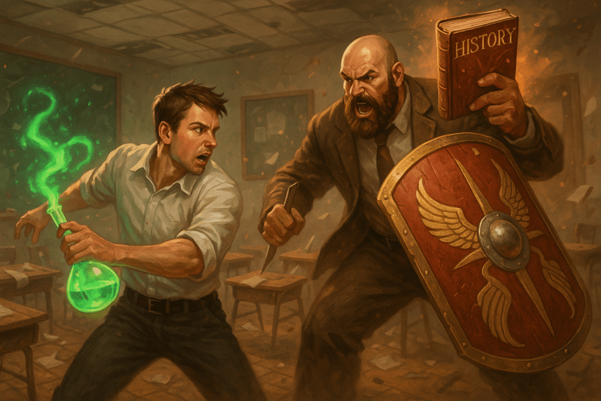In this fight between an amazing science teacher and an okay history teacher who would win?!?!?