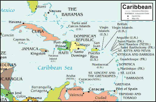 Body of water bordered by the Caribbean Islands