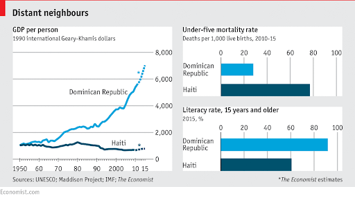 Haiti’s GDP per person is close to 60% and the Dominican Republic’s GDP per person is close to 90%.