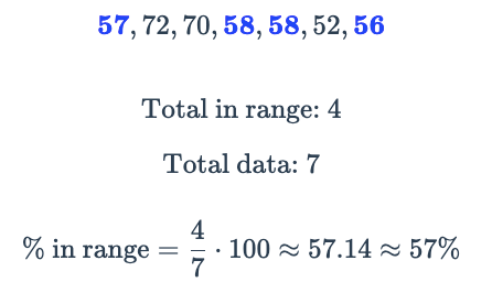 For the following set of data, find the percentage of data within 1 population standard deviation of the mean, to the nearest percent.
