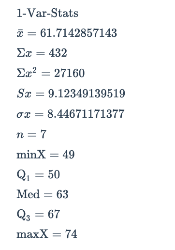 Based on the following calculator output, determine the sample standard deviation of the dataset, rounding to the nearest 100th if necessary.