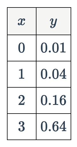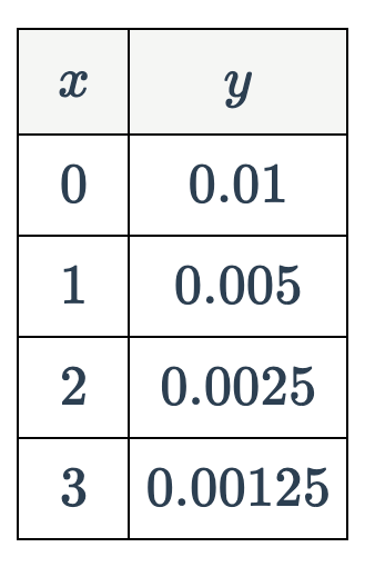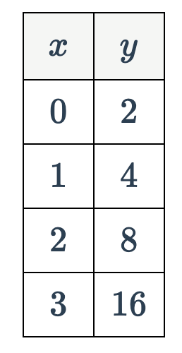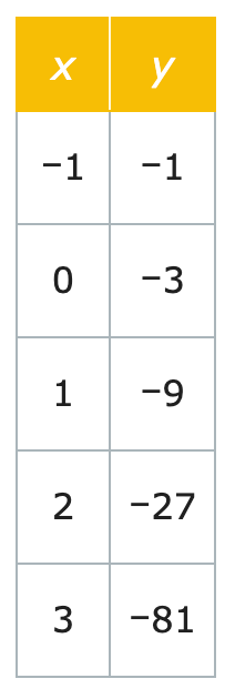 Look at the table, is it linear or exponential? What is the pattern in the y-column.