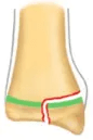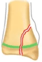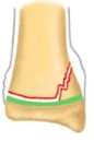 Epiphyseal growth plate injury where there is a fracture of a portion of the physis and metaphysis.