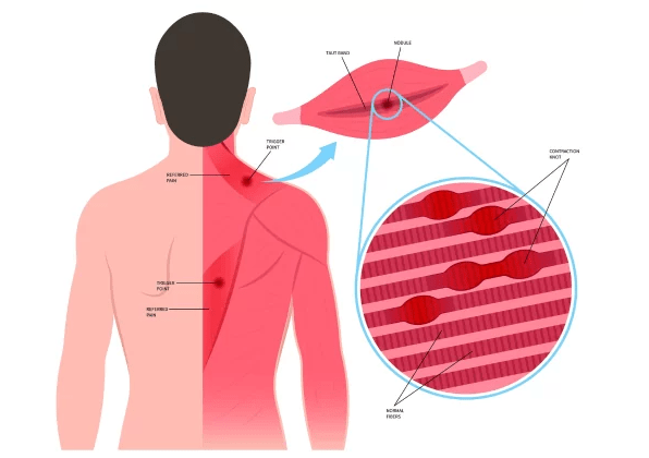 A discreet, hypersensitive nodule within a taut band of skeletal muscle or fascia.
