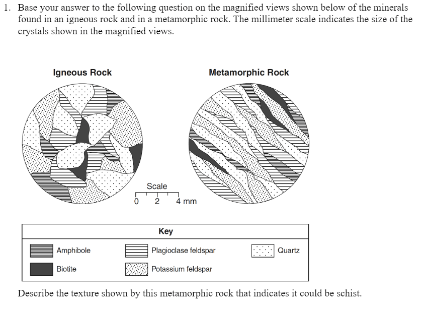 Acceptable answers: Foliated, mineral alignment, or flattened crystals.