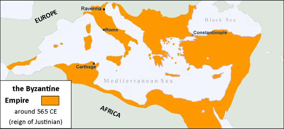 b. The Byzantine Empire surrounded the Mediterranean Sea.