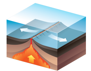 Magma is rising causing the seafloor to spread and will lead to the creation of underwater mountains