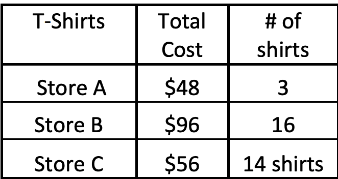 Cam bought a package of three T-shirts for $18.00 What is the unit price per T-shirt?