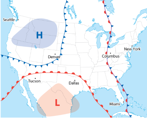 If Denver is experiencing a high pressure system, what type of weather conditions should be expected?