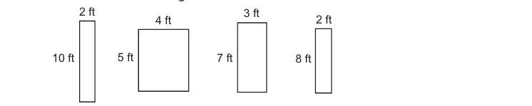 The rectangles shown are measured in feet (ft). Which of the rectangles have the same perimeter but different areas? Circle 2