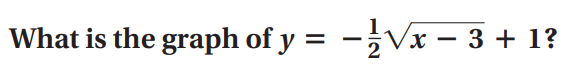 What is a reflection across the x-axis, vertical shrink by the factor 1/2, 3 units to the right and 1 unit up.