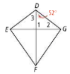 DEFG is a kite. What are the measures of angles 1, 2, 3, and 4?