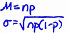 What are the formulas to find the mean and standard deviation of the sampling distribution of a sample count?
