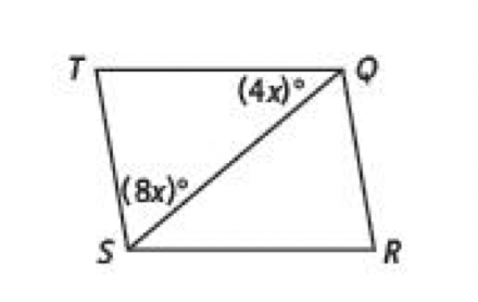QRST is a parallelogram and x = 10. What is m∠QRS?