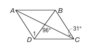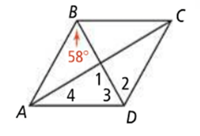 Find the angle measures for 1, 2, 3, and 4 in the following rhombus