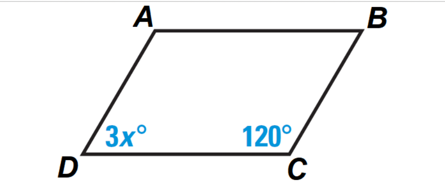 Solve for x in the following parallelogram https://www.onlinemath4all.com/properties-of-parallelogram.html