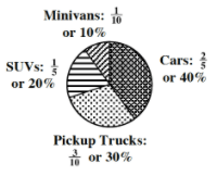 What is cars = 144°, truck = 108°, SUV = 72°, minivan = 36°?
