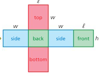 Draw the net of a rectangular prism and label where the Length(l), the Width(w), and the Height(h) should be on the net.